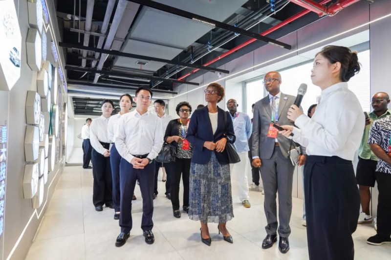考察團(tuán)一行先后參觀了中偉科技館、中偉全球研發(fā)中心等,詳細(xì)了解中偉發(fā)展歷程、科技創(chuàng)新以及全球產(chǎn)業(yè)布局等情況。在科技館,劉一重點(diǎn)向考察團(tuán)介紹了中偉“資源開發(fā)-材料智造-全球循環(huán)”的新能源材料產(chǎn)業(yè)生態(tài)以及公司圍繞這一生態(tài)所作的的全球產(chǎn)業(yè)布局。代表團(tuán)成員認(rèn)真聆聽,對中偉的生態(tài)化、全球化發(fā)展表示由衷的贊賞,并不時就中偉在非洲產(chǎn)業(yè)布局和未來規(guī)劃進(jìn)行問詢,探討深入合作的可能性。